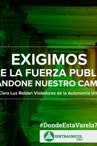 SINTRAUNICOL registra los hechos del día 23 de abril de 2021 en el campus de Meléndez para reiterar la verdad histórica de lo sucedido y exigir justicia así como garantías de no repetición. El movimiento estudiantil inició recientemente una serie de asambleas por facultades y unidades académicas, escenarios que permitieron ir construyendo una serie de exigencias, en torno a lo académico, la metodología de alternancia, garantías en materia de bienestar, entre otros tópicos, en el marco de esta nueva realidad, caracterizada por la pandemia. En este contexto, un grupo de estudiantes decide abanderar estas demandas, por medio de un campamento estudiantil en el campus de Meléndez, con el objetivo de buscar una respuesta de parte de las autoridades universitarias e interlocutar con la instalación de una mesa de dialogo, escenario en el cual también planteamos en su momento la importancia de poder participar, sin embargo, la primera reacción de parte de la administración fue la negación al dialogo y el no reconocimiento de aquel grupo como estudiantes, para buscar una solución dialogada a este conflicto. El día anterior a la maquiavélica acción, es decir el 22 de abril de 2021, se abre un espacio de dialogo, entre la administración y los estudiantes que hacían parte del campamento, lo que generó la impresión de que se iniciaría un escenario de concertación, sin embargo, consideramos, todo se trató de una estratagema, para que los estudiantes se confiaran, mientras en otro espacio se configuraba un consejo de seguridad, entre la fuerza pública, la gobernadora, el rector y quien sabe que otros actores planificando el fatídico hecho.